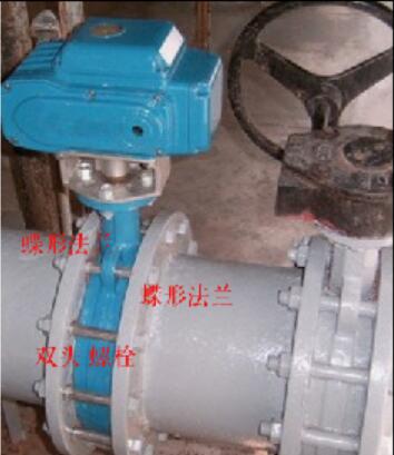 接下來的這個(gè)圖片就是對(duì)夾蝶閥的一個(gè)安裝示意圖。這上面很明白的產(chǎn)品顯示了安裝部分,應(yīng)該處于的位置。有螺栓也有管道,管子焊在法蘭上,法蘭中間夾著的蝶閥,然后是用雙頭螺栓連接在一起。也有就是使用單頭的六角螺栓來進(jìn)行安裝的。其實(shí)作用也是一樣的。當(dāng)然這兒說的是對(duì)夾式的產(chǎn)品,如果是產(chǎn)品本身自帶法蘭的,是叫做341這樣的一種連接方式,如果看到這樣的一種連接方式,不管他是橡膠密封的或者是金屬硬密封的蝶閥產(chǎn)品。都是配相應(yīng)的壓力的普通法蘭產(chǎn)品就可以了。圖片中所展示的這個(gè)閥門兒叫做電動(dòng)蝶閥這是說他的驅(qū)動(dòng)方式。有手柄進(jìn)行。驅(qū)動(dòng)的,也有渦輪驅(qū)動(dòng)的。這個(gè)則是遠(yuǎn)程的。來操縱它上面的電動(dòng)裝置來進(jìn)行打開或者關(guān)閉的一種蝶閥產(chǎn)品。這樣的閥門在進(jìn)行操作時(shí),不用到到現(xiàn)場(chǎng)就行的。電路連接到了閥門上,在控制室里面就能時(shí)間閥門的開啟和關(guān)閉了。如果和是否采用蝶形法蘭產(chǎn)品在下面的章節(jié)中有說明。